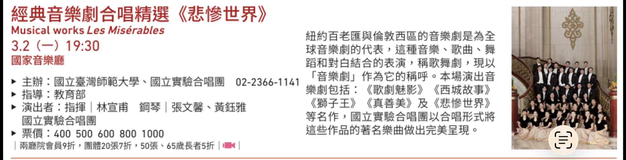 經典音樂劇合唱精選《悲慘世界》 線上購票 (尚未啟售) 時間:115...