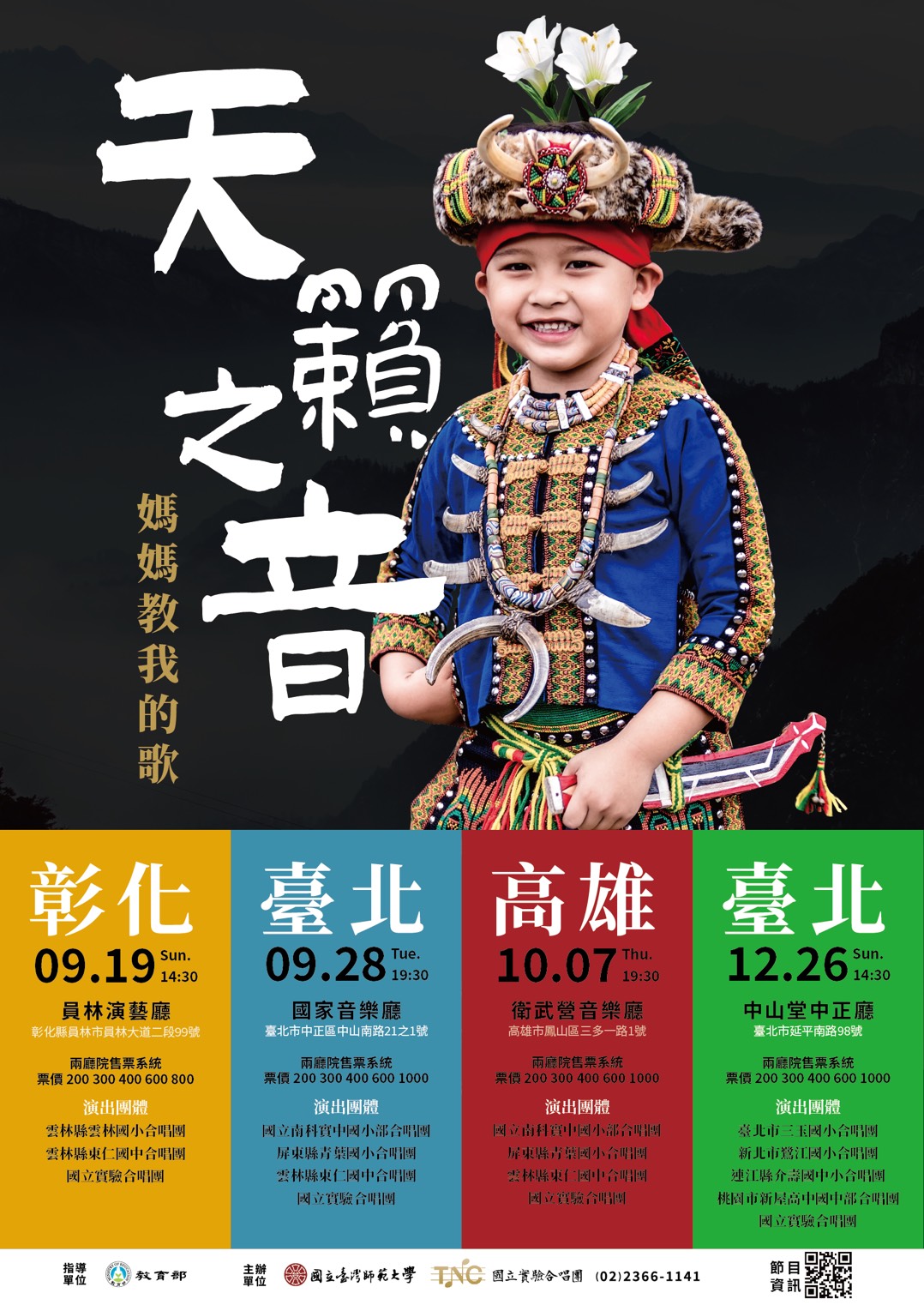 演出│國立實驗合唱團、臺北市三玉國小合唱團、新北市鷺江國小合唱團、連江縣介壽國中小合唱團、桃園市新屋高中國中部合唱團